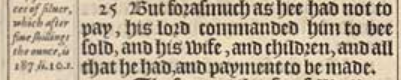 25 But forasmuch as hee had not to pay, his lord commanded him to bee sold, and his wife, and children, and all that he had, and payment to be made.