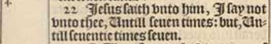22 Iesus saith vnto him, I say not vnto thee, Untill seuen times: but, Untill seuentie times seuen.