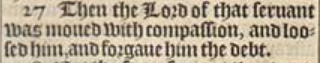 27 Then the Lord of that seruant was moued with compassion, and loosed him, and forgaue him the debt.