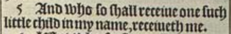 5 And who so shall receiue one such little child in my name, receiueth me.