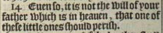 14 Euen so, it is not the will of your father which is in heauen, that one of these little ones should perish.