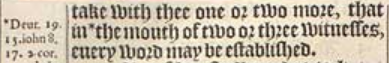 16 But if he will not heare thee, then take with thee one or two more, that in *the mouth of two or three witnesses, euery word may be established.[*Deut. 19.15. iohn 8.17. 2. cor. 13.1. hebr. 10.28.]