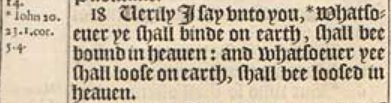 18 Uerily I say vnto you, *Whatsoeuer ye shall binde on earth, shall bee bound in heauen: and whatsoeuer yee shall loose on earth, shall bee loosed in heauen.[*Iohn 20.23. 1.cor. 5.4.]