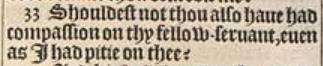 33 Shouldest not thou also haue had compassion on thy fellow-seruant, euen as I had pitie on thee?