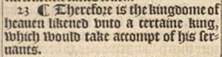 23 ¶ Therefore is the kingdome of heauen likened vnto a certaine king, which would take accompt of his seruants.