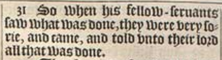 31 So when his fellow-seruants saw what was done, they were very sorie, and came, and told vnto their lord all that was done.