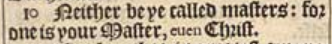 10 Neither be ye called masters: for one is your Master, euen Christ.