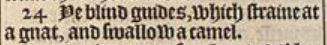 24 Ye blind guides, which straine at a gnat, and swallow a camel.