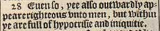 28 Euen so, yee also outwardly appeare righteous vnto men, but within ye are full of hypocrisie and iniquitie.