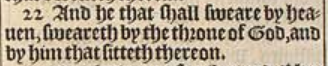 22 And he that shall sweare by heauen, sweareth by the throne of God, and by him that sitteth thereon.