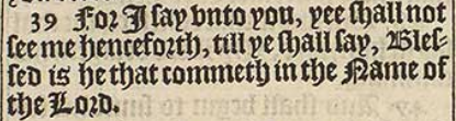 39 For I say vnto you, yee shall not see me henceforth, till ye shall say, Blessed is he that commeth in the Name of the Lord.