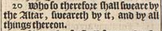 20 Who so therefore shall sweare by the Altar, sweareth by it, and by all things thereon.