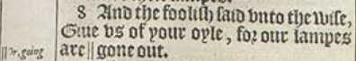 8 And the foolish said vnto the wise, Giue vs of your oyle, for our lampes are || gone out.[||or, going out,]
