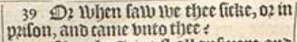 39 Or when saw we thee sicke, or in prison, and came vnto thee?