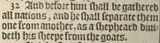 32 And before him shall be gathered all nations, and he shall separate them one from another, as a shepheard diuideth his sheepe from the goats.
