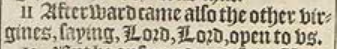 11Afterward came also the other virgines, saying, Lord, Lord, open to vs.