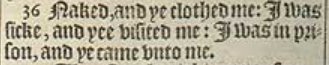 36 Naked, and ye clothed me: I was sicke, and yee visited me: I was in prison, and ye came vnto me.