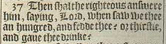 37 Then shal the righteous answere him, saying, Lord, when saw we thee an hungred, and fedde thee? or thirstie, and gaue thee drinke?