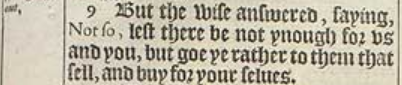 9 But the wise answered, saying, Not so, lest there be not ynough for vs and you, but goe ye rather to them that sell, and buy for your selues.