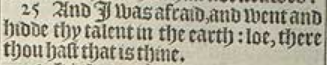 25 And I was afraid, and went and hidde thy talent in the earth: loe, there thou hast that is thine.