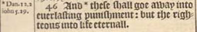 46 Und *diese werden weggehen in ewige Bestrafung: Aber die Rechtschaffenen in ewiges Leben."[*Daniel 12:2 Johannes 5:29]