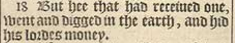 18 But hee that had receiued one, went and digged in the earth, and hid his lordes money.