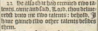 22 He also that had receiued two talents, came and said, Lord, thou deliueredst vnto me two talents: behold, I haue gained two other talents besides them.