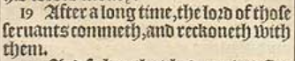 19 After a long time, the lord of those seruants commeth, and reckoneth with them.