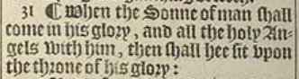 31 ¶ When the Sonne of man shall come in his glory, and all the holy Angels with him, then shall hee sit vpon the throne of his glory: