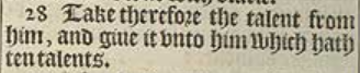 28 Take therefore the talent from him, and giue it vnto him which hath ten talents.