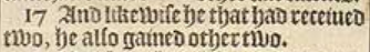 17 Und ebenso der, welcher zwei Talente erhalten hatte, gewann weitere zwei.