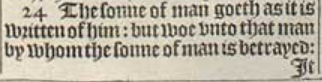 24 The sonne of man goeth as it is written of him: but woe vnto that man by whom the sonne of man is betrayed: It had bin good for that man, if hee had not bene borne.