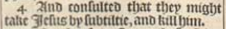 4 And consulted that they might take Iesus by subtiltie, and kill him.