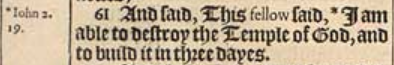 61 And said, This fellow said, *I am able to destroy the Temple of God, and to build it in three dayes.[*Iohn 2.19.]