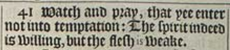 41 Watch and pray, that yee enter not into temptation: The spirit indeed is willing, but the flesh is weake.