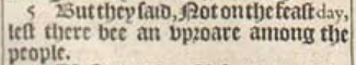 5 But they said, Not on the feast day, lest there bee an vproare among the people.