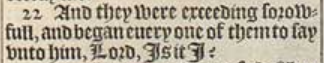 22 And they were exceeding sorowfull, and began euery one of them to say vnto him, Lord, Is it I?