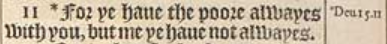 11 *For ye haue the poore alwayes with you, but me ye haue not alwayes.[*Deu. 15.11.]
