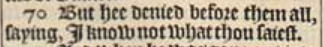 70 But hee denied before them all, saying, I know not what thou saiest.