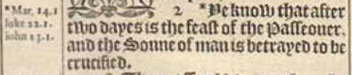 2 *Ye know that after two dayes is the feast of the Passeouer, and the Sonne of man is betrayed to be crucified.[*Mar. 14.1 luke 22.1. iohn 13.1.]