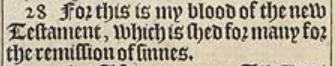 28 For this is my blood of the new Testament, which is shed for many for the remission of sinnes.
