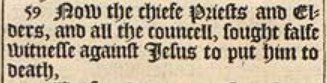 59 Now the chiefe Priests and Elders, and all the councell, sought false witnesse against Iesus to put him to death,