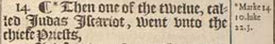14 ¶ *Then one of the twelue, called Iudas Iscariot, went vnto the chiefe Priests,[*Marke 14.10. luke 22.3.]