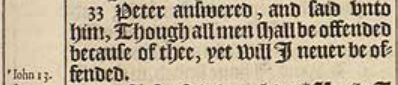 33 Peter answered, and said vnto him, Though all men shall be offended because of thee, yet will I neuer be offended.