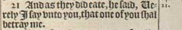 21 And as they did eate, he said, Uerely I say vnto you, that one of you shal betray me.