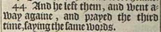 44 And he left them, and went away againe, and prayed the third time, saying the same words.