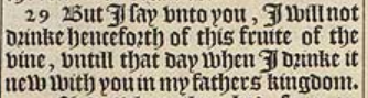 29 But I say vnto you, I will not drinke henceforth of this fruite of the vine, vntill that day when I drinke it new with you in my fathers kingdom.