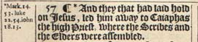3 *Then assembled together the chiefe Priests, and the Scribes, and the Elders of the people, vnto the palace of the high Priest, who was called Caiaphas,[*Ioh.11.47]