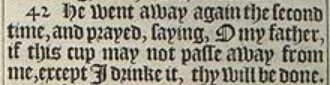 42 He went away again the second time, and prayed, saying, O my father, if this cup may not passe away from me, except I drinke it, thy will be done.