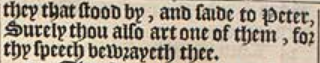 73 And after a while came vnto him they that stood by, and saide to Peter, Surely thou also art one of them, for thy speech bewrayeth thee.
